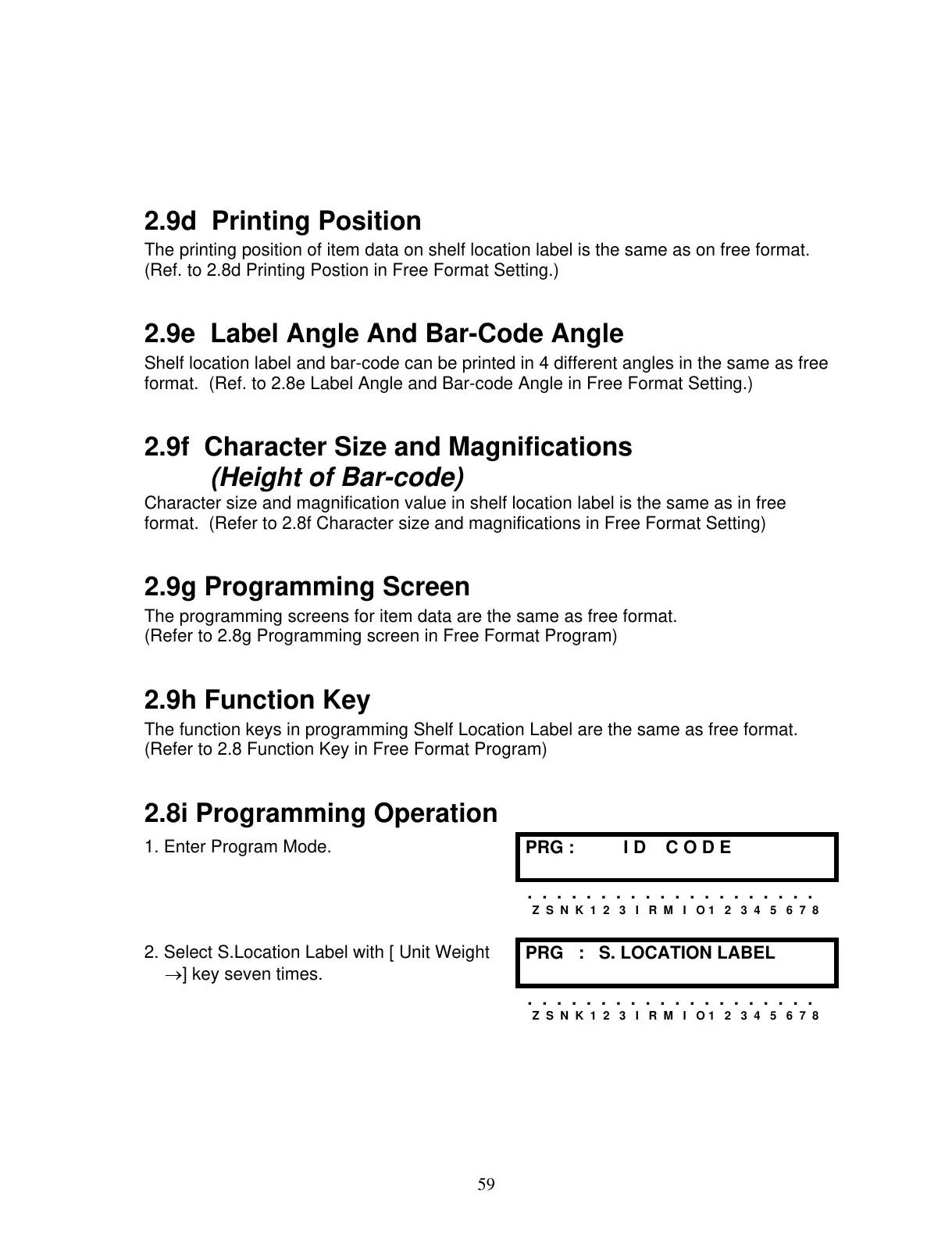 format. (Ref. to 2.8e Label Angle and Bar-code Angle in Free Format Setting.)