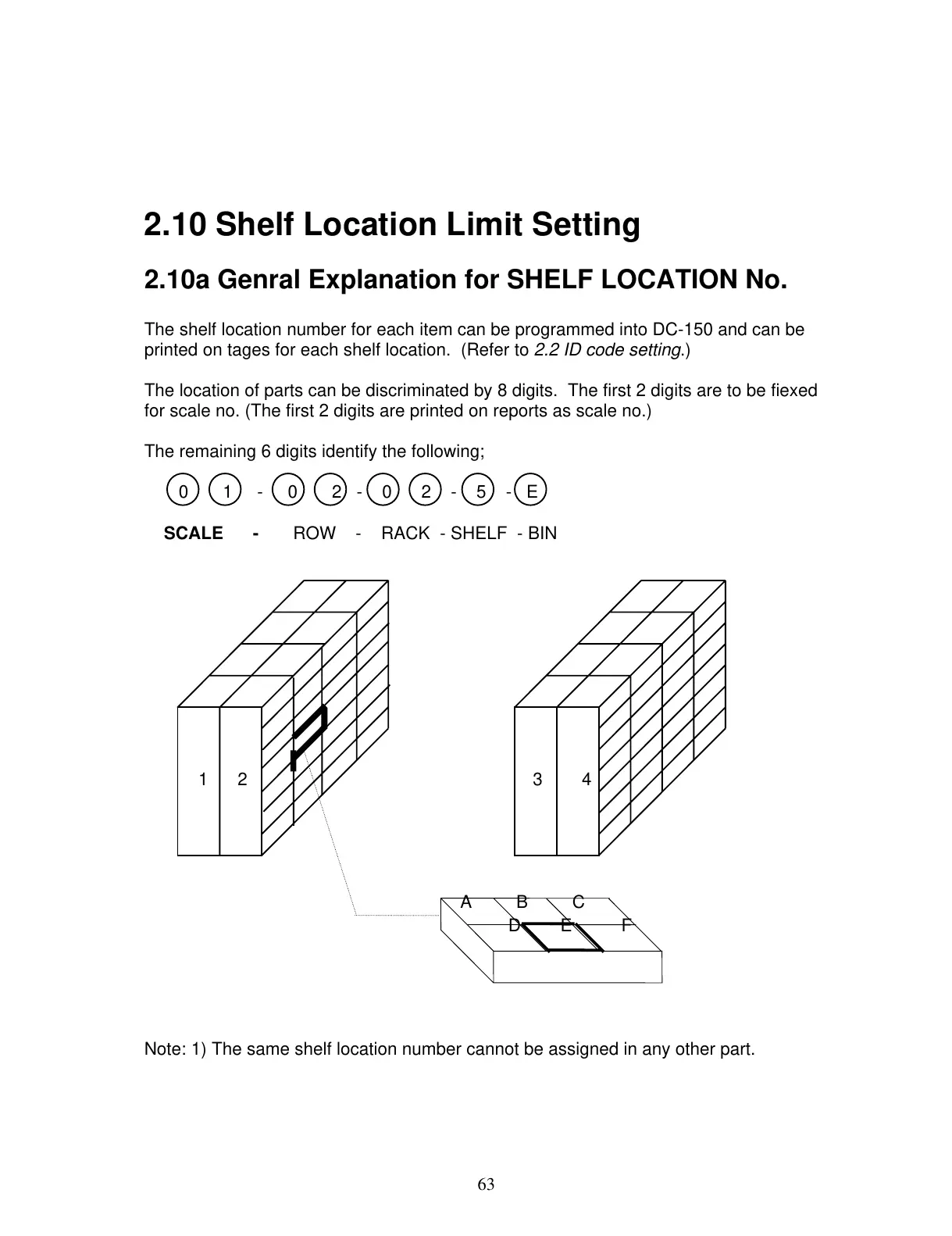 Note: 1) The same shelf location number cannot be assigned in any other part.