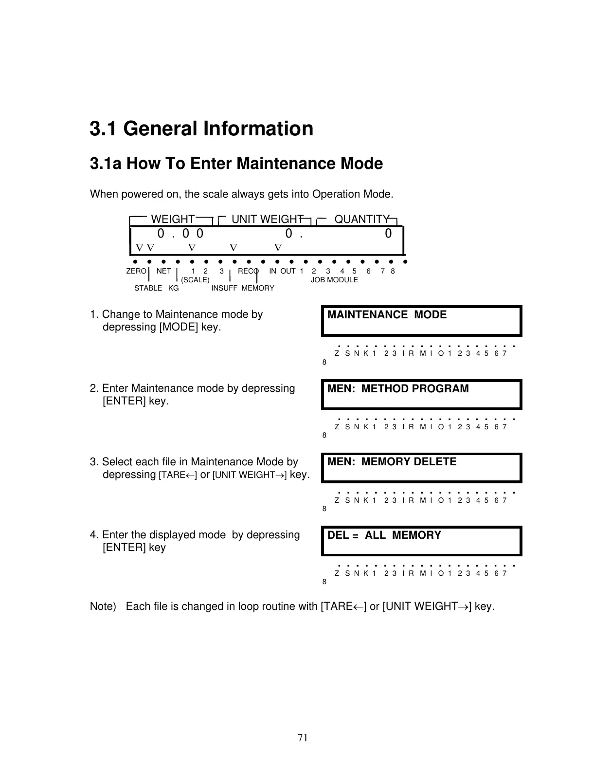 Note) Each file is changed in loop routine with [TARE←] or [UNIT WEIGHT→] key.