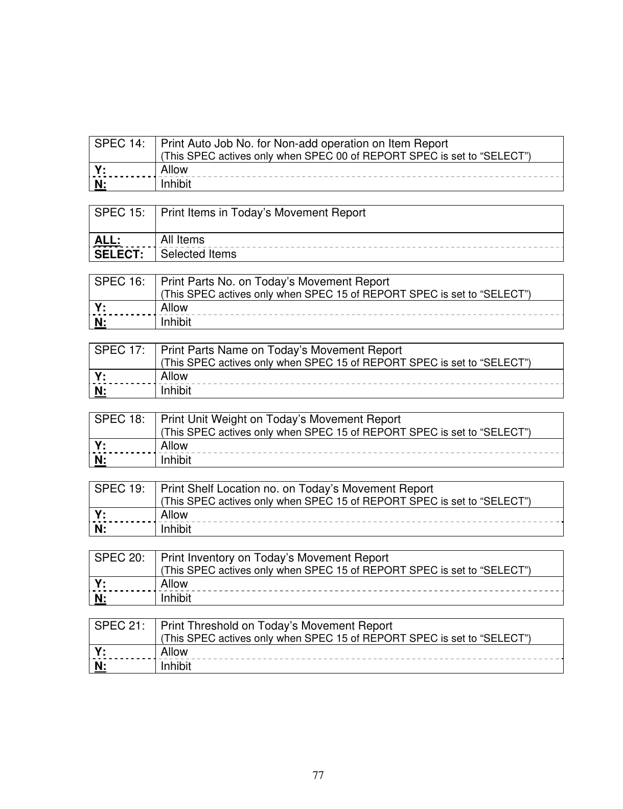 (This SPEC actives only when SPEC 00 of REPORT SPEC is set to “SELECT”)