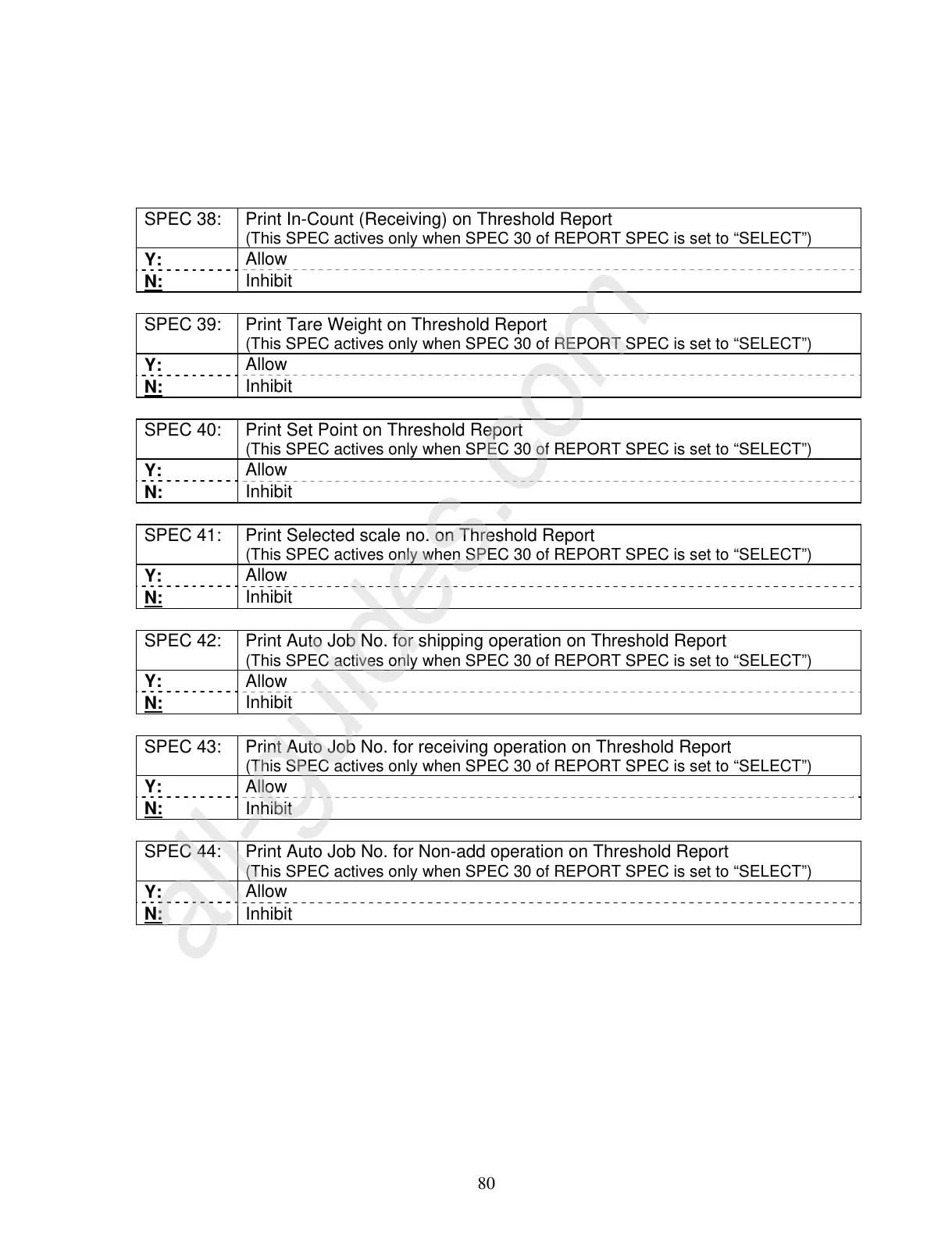 (This SPEC actives only when SPEC 30 of REPORT SPEC is set to “SELECT”)