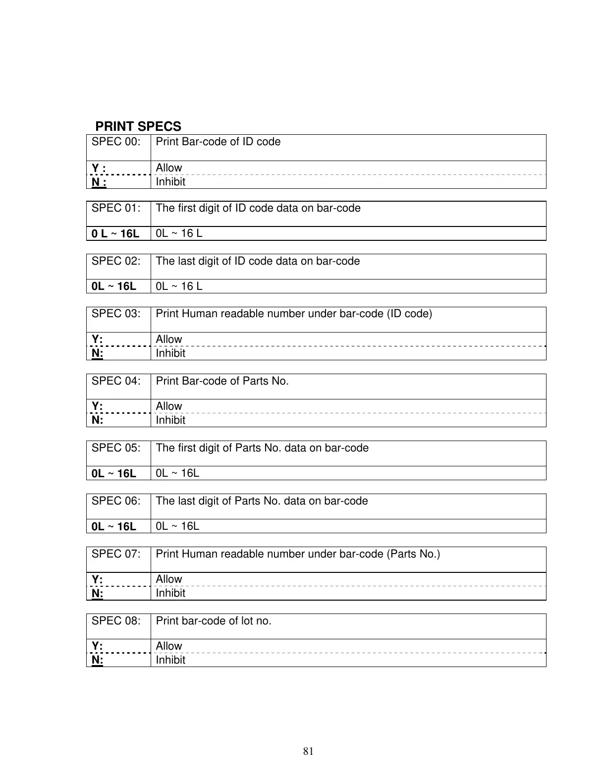SPEC 07: Print Human readable number under bar-code (Parts No.)