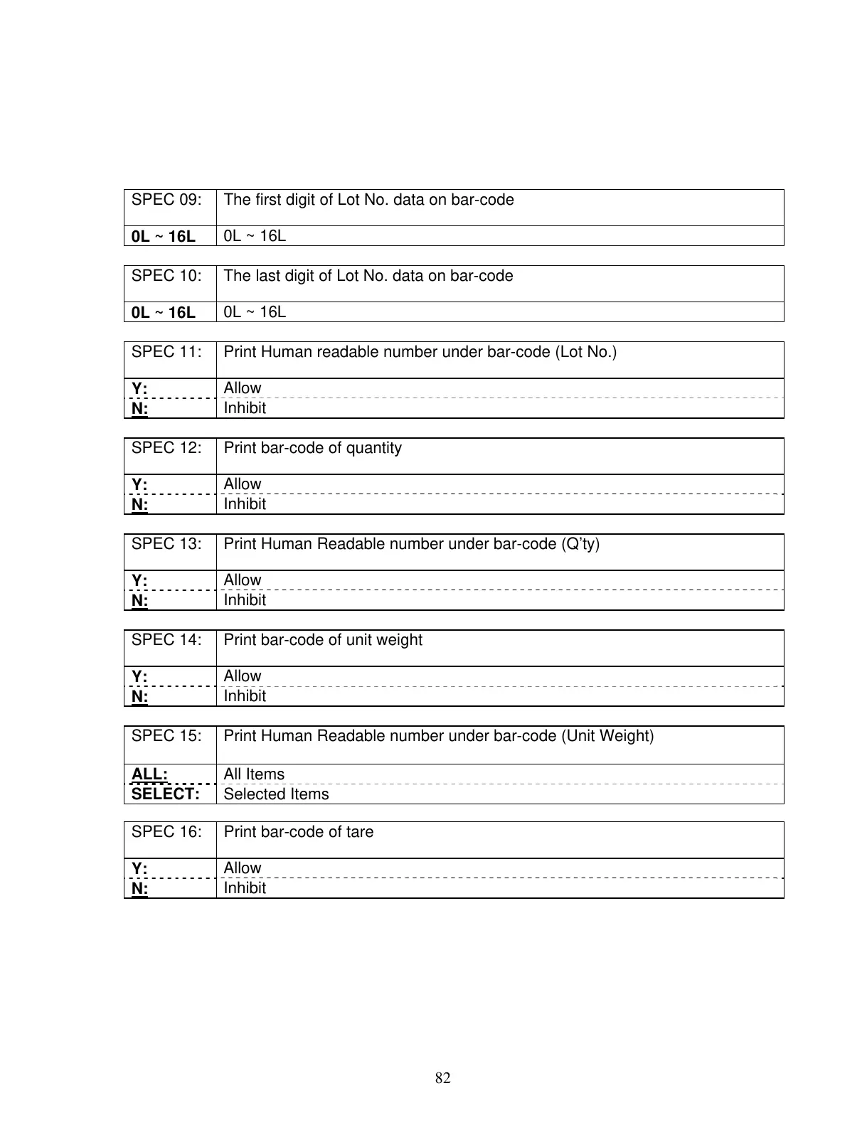 SPEC 09: The first digit of Lot No. data on bar-code