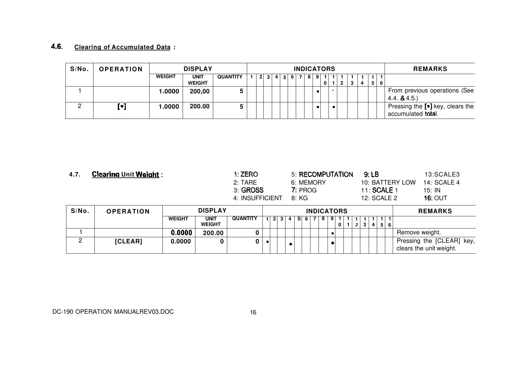 2: TARE 6: MEMORY 10: BATTERY LOW 14: SCALE 4