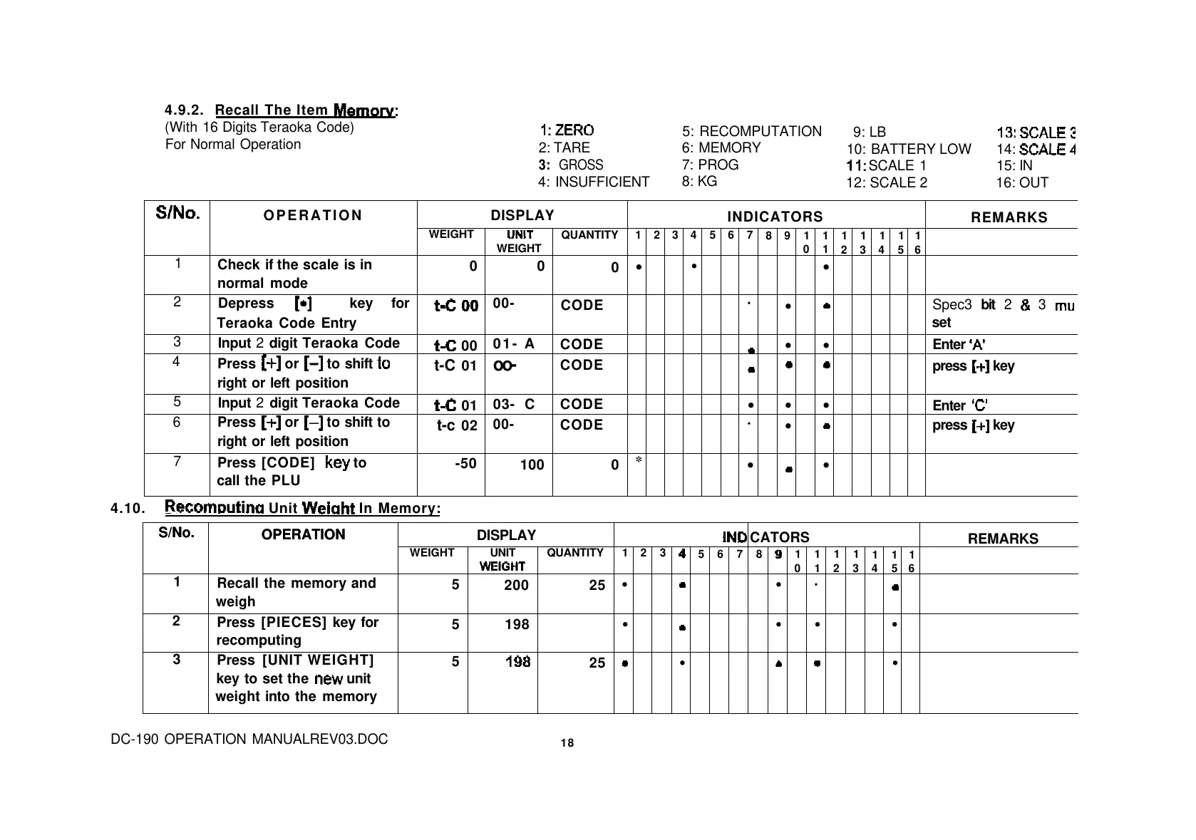 Digi DC-190 - Recomputing Unit Weight in Memory