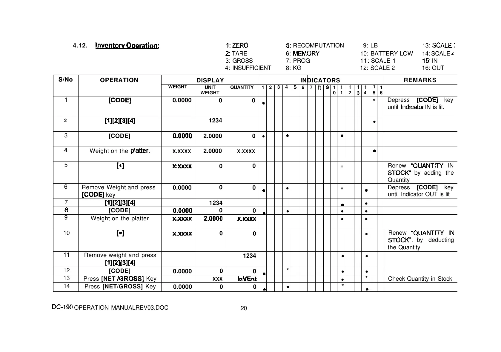 4: INSUFFICIENT 8: KG 12: SCALE 2 16: OUT