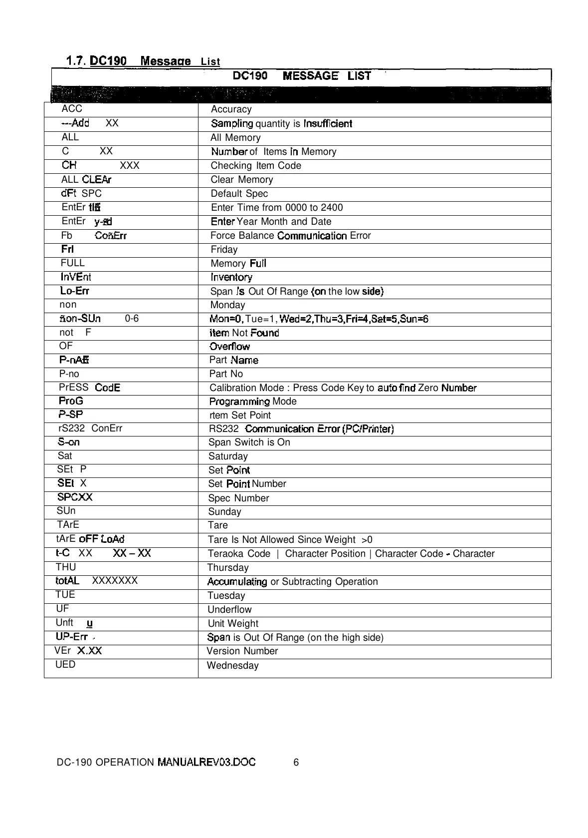 Digi DC-190 - DC-190 Message List