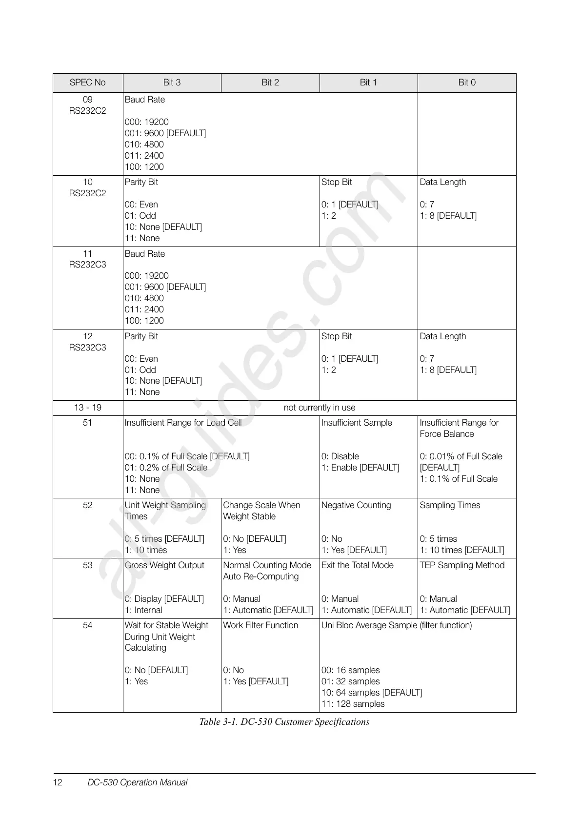 Table 3-1. DC-530 Customer Specifications
