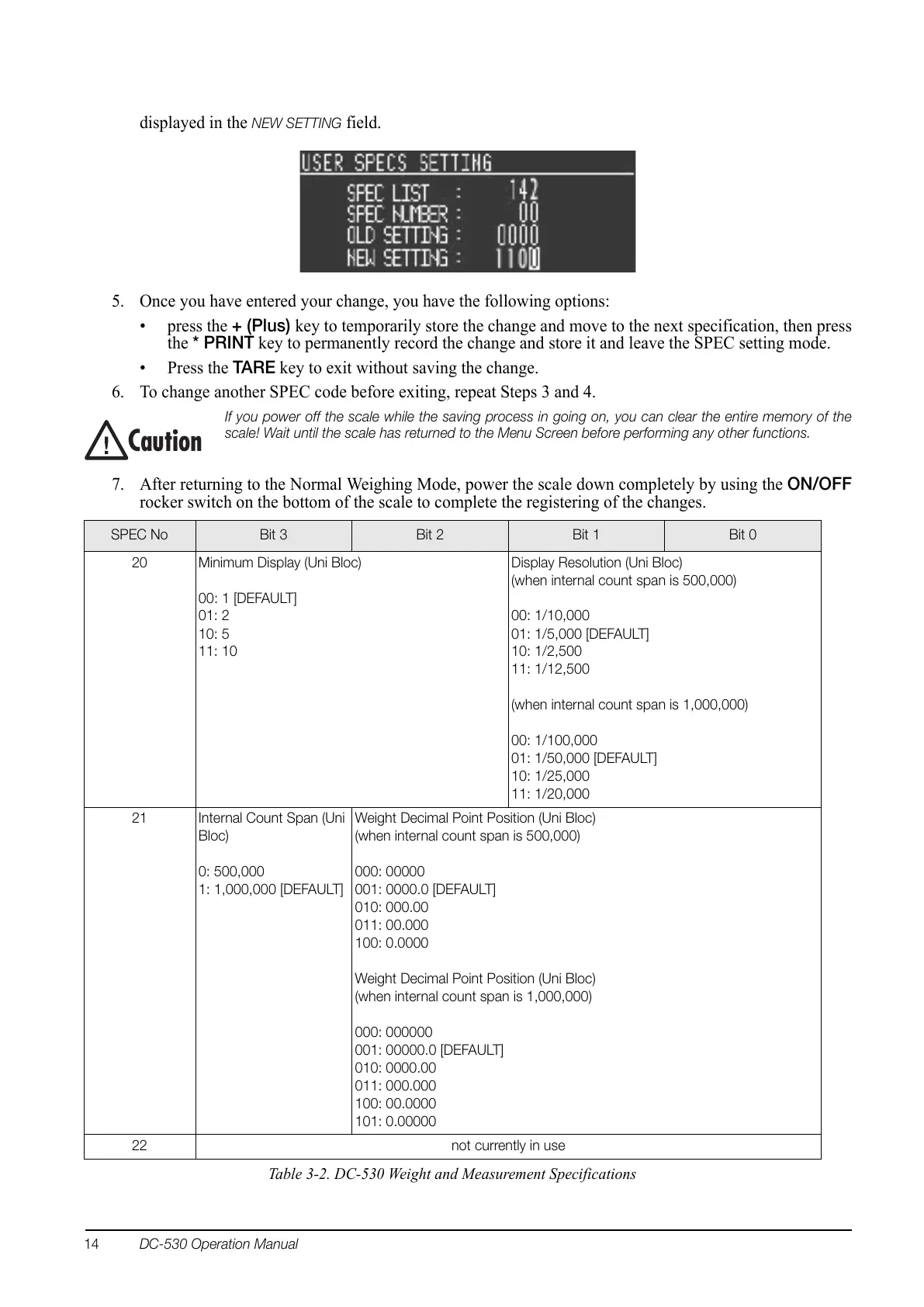 the * PRINT key to permanently record the change and store it and leave the SPEC setting mode.