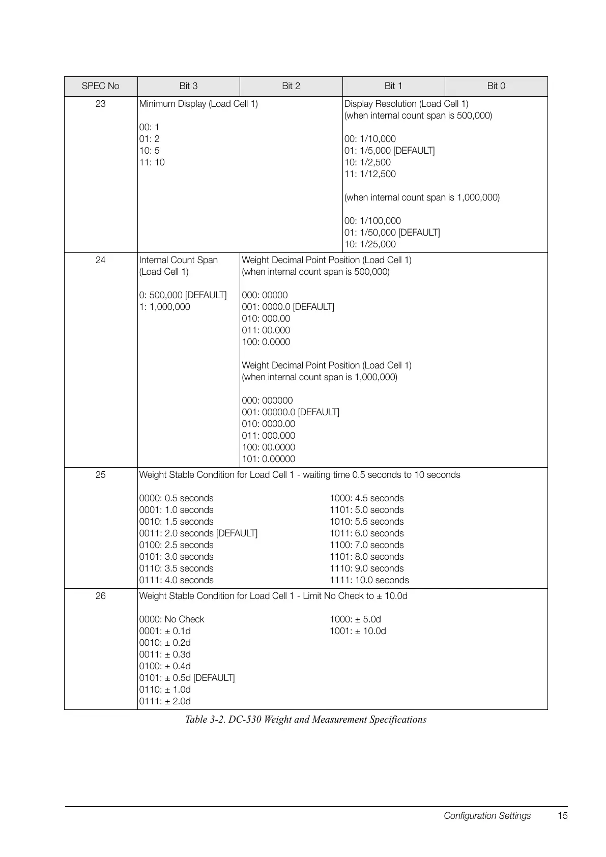 26 Weight Stable Condition for Load Cell 1 - Limit No Check to ± 10.0d
