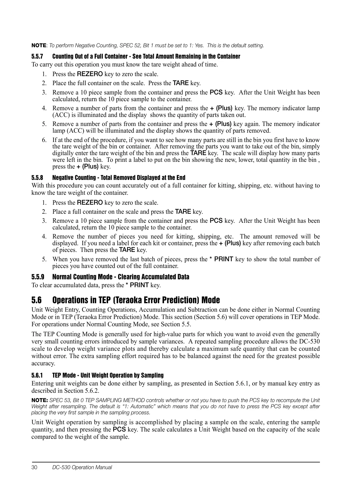 NOTE: SPEC 53, Bit 0 TEP SAMPLING METHOD controls whether or not you have to push the PCS key to recompute the Unit