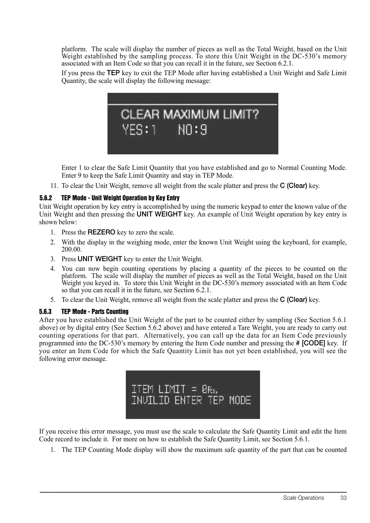 5.6.2 TEP Mode - Unit Weight Operation by Key Entry