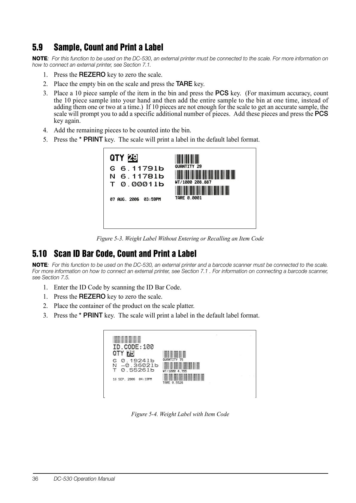 NOTE: For this function to be used on the DC-530, an external printer must be connected to the scale. For more information on