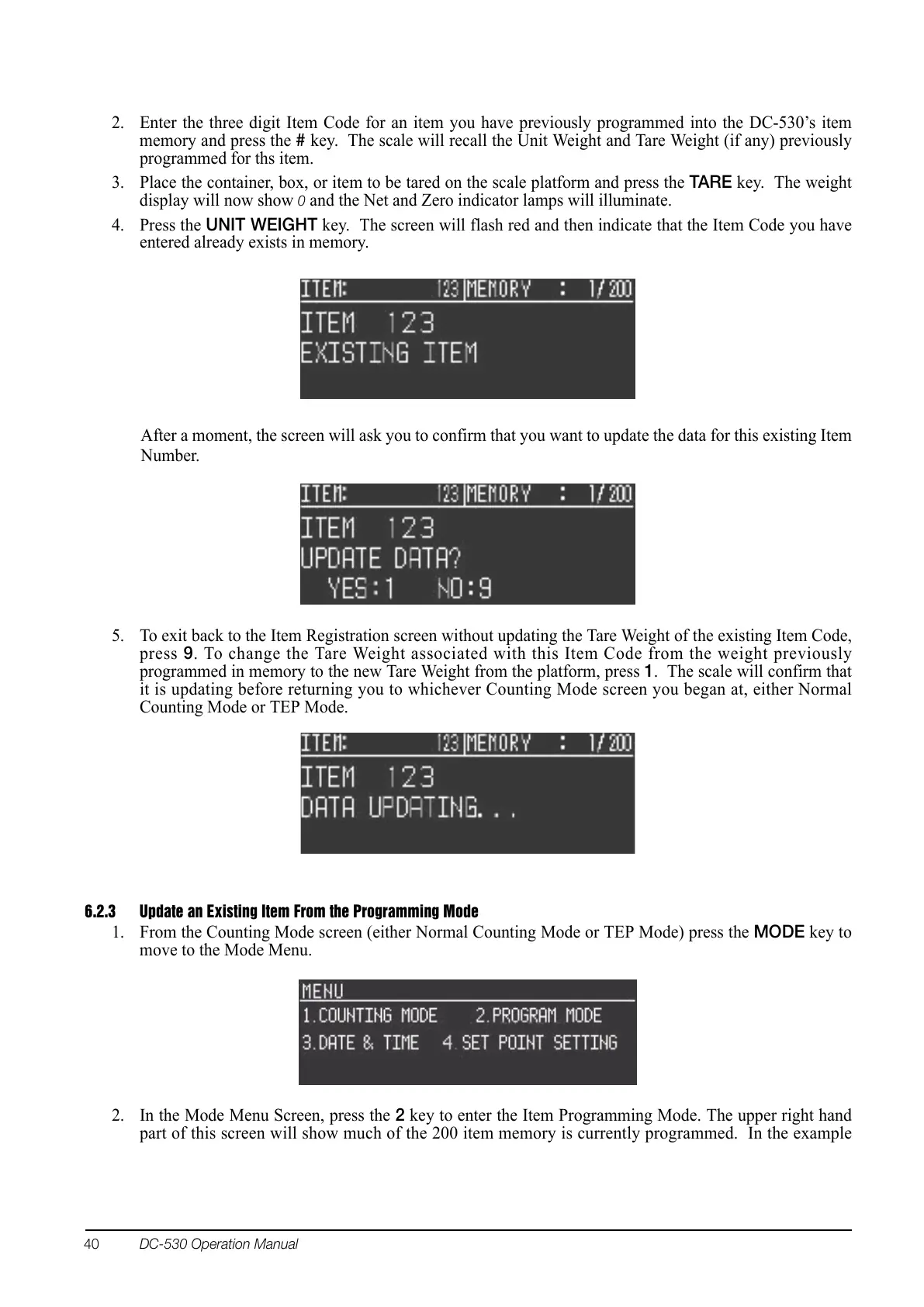 6.2.3 Update an Existing Item From the Programming Mode