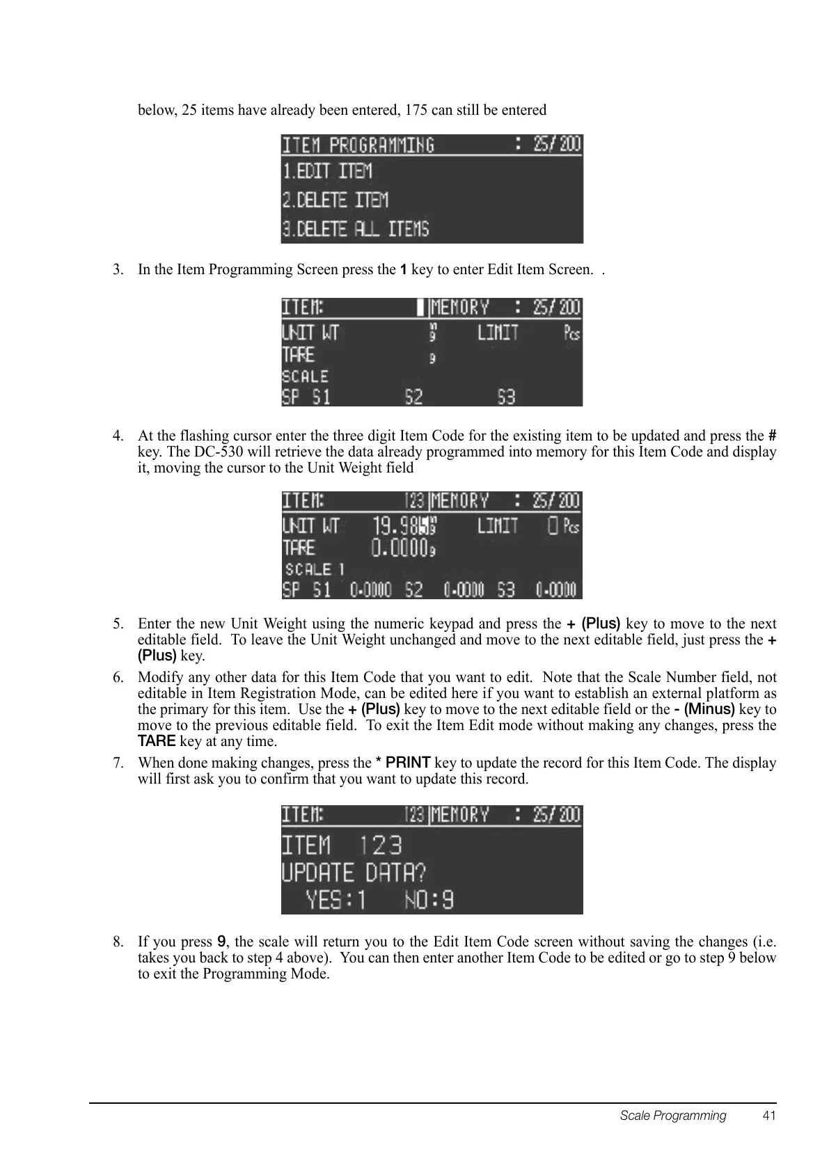 3. In the Item Programming Screen press the 1 key to enter Edit Item Screen. .