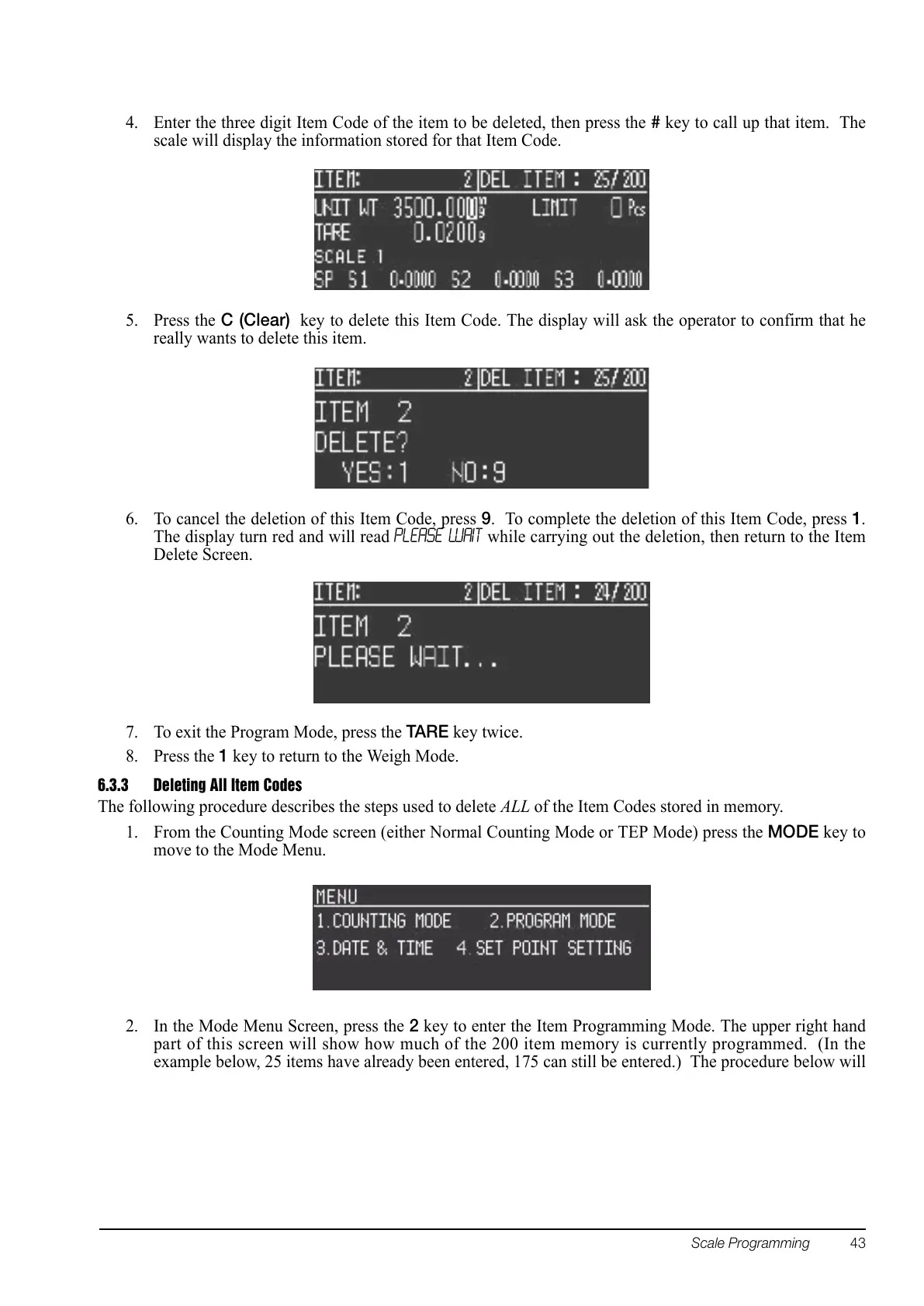6.3.3 Deleting All Item Codes