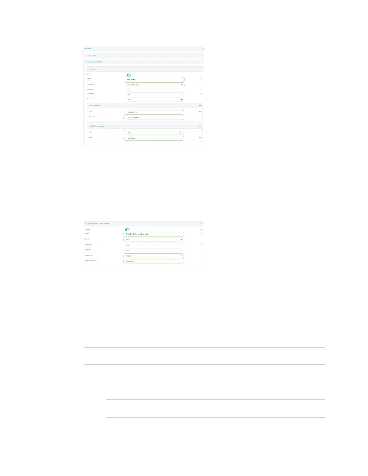 6. Create a packet filtering rule that rejects all other LAN packets on the cellular WANinterface.