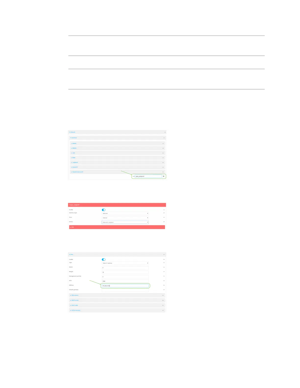 6. For Address, type the IP address of the local GRE tunnel, 172.30.0.1/32.