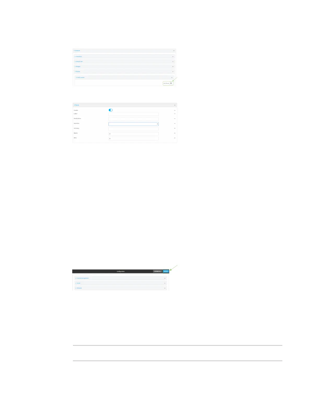 4. Click the to add a new static route.