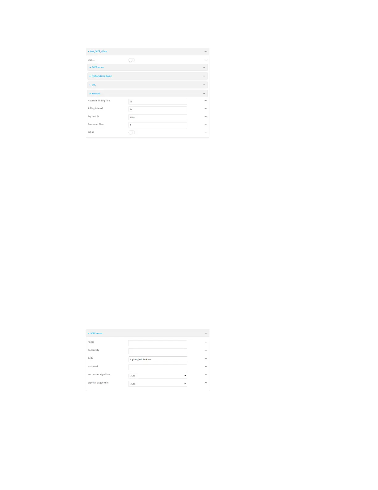 6. For Maximum Polling Time, type the maximum time that the device will poll the SCEPserver,