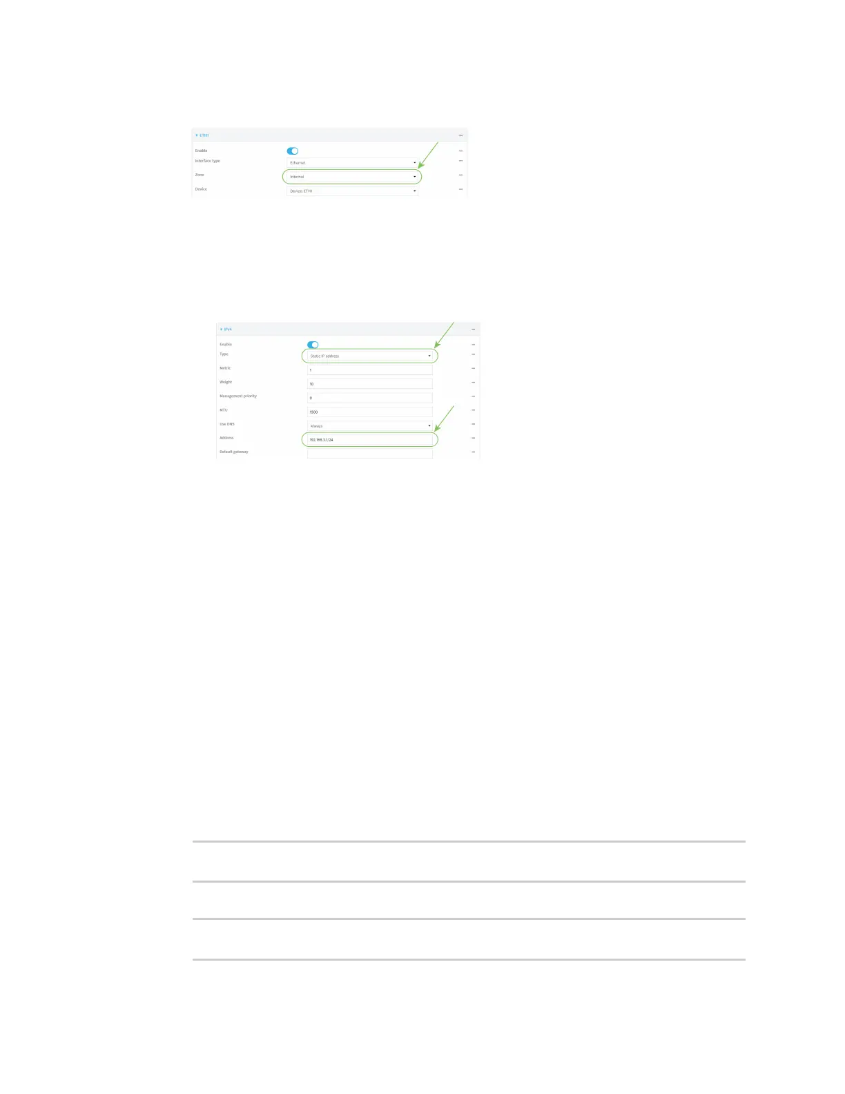 (config)> network interface eth1 zone internal