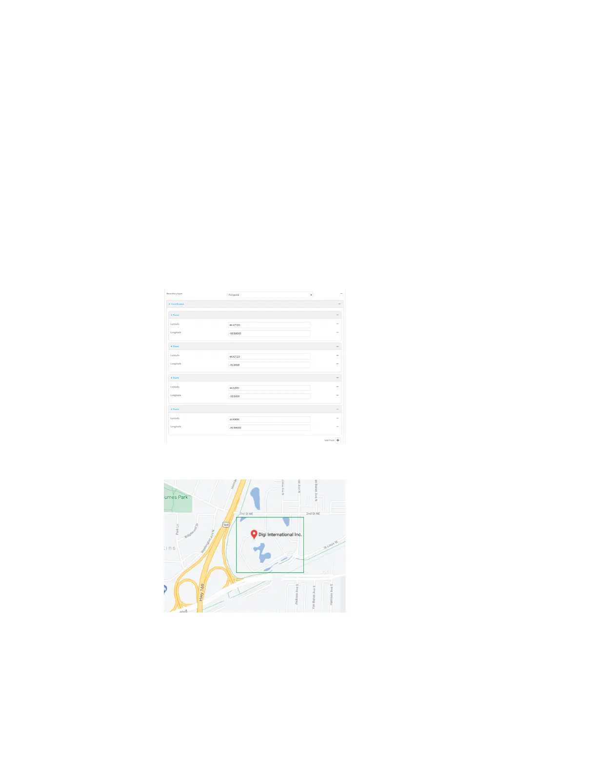 For example, to configure a square polygon around the Digi headquarters, configure a