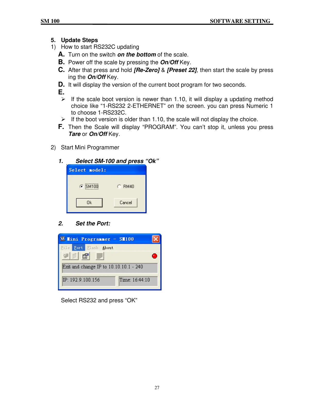 Ü If the boot version is older than 1.10, the scale will not display the choice.