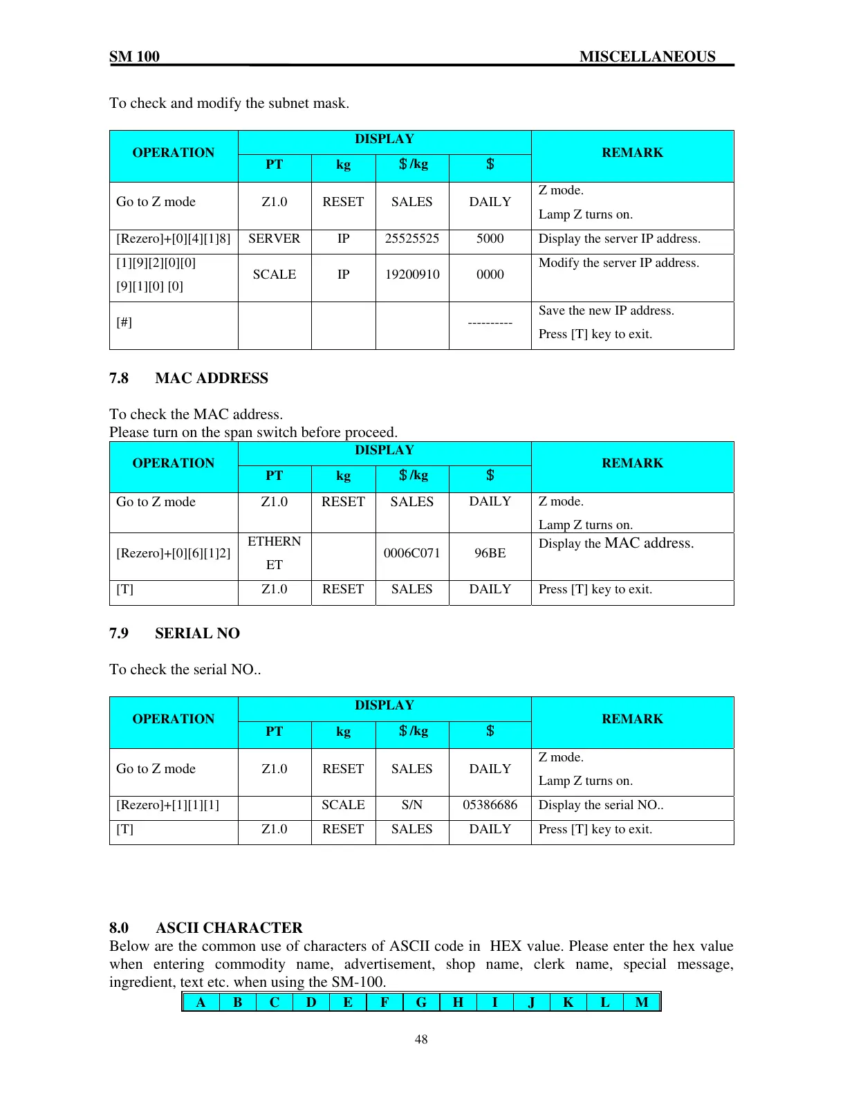 8.0 ASCII CHARACTER