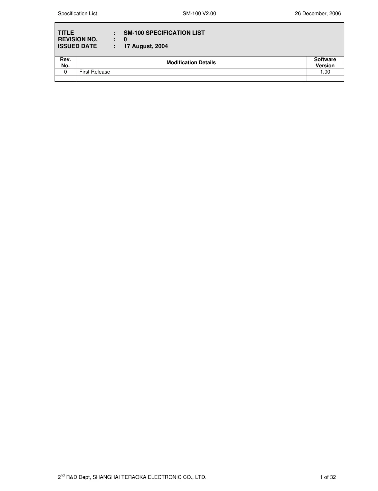 R&D Dept, SHANGHAI TERAOKA ELECTRONIC CO., LTD. 1 of 32