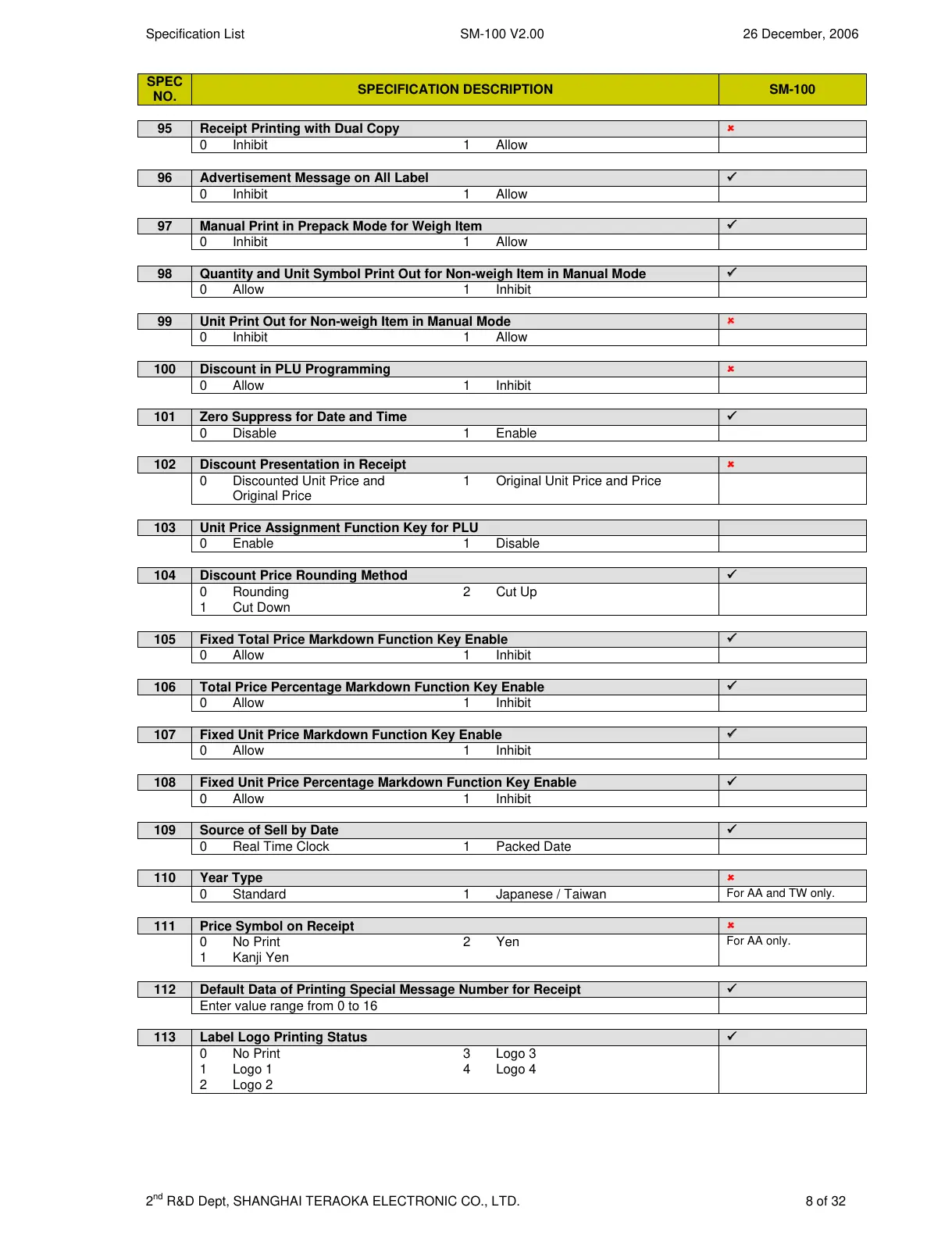 98 Quantity and Unit Symbol Print Out for Non-weigh Item in Manual Mode