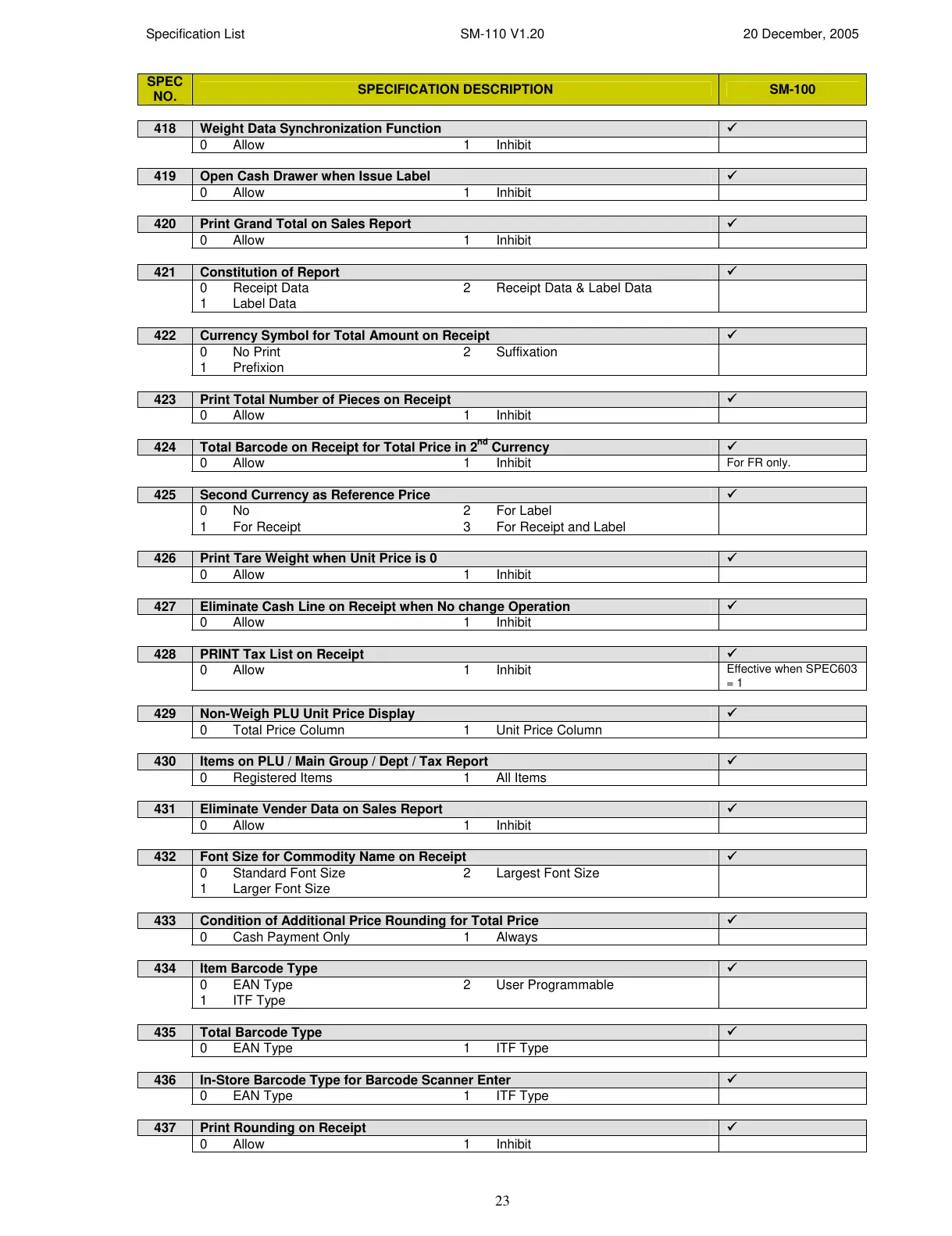 Specification List SM-110 V1.20 20 December, 2005