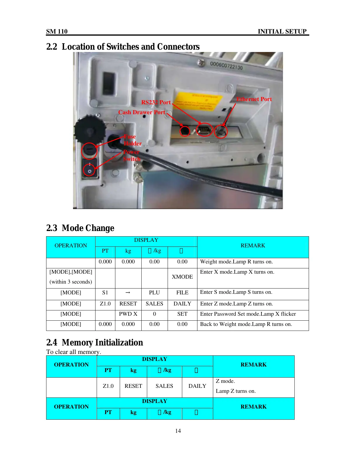 [MODE] Z1.0 RESET SALES DAILY Enter Z mode.Lamp Z turns on.