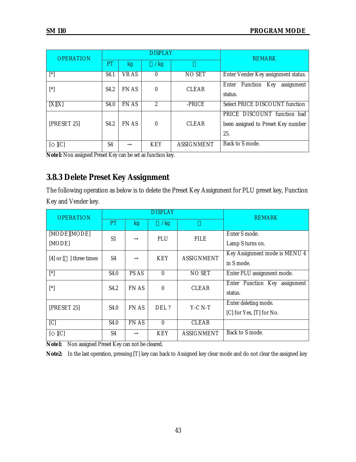 The following operation as below is to delete the Preset Key Assignment for PLU preset key, Function