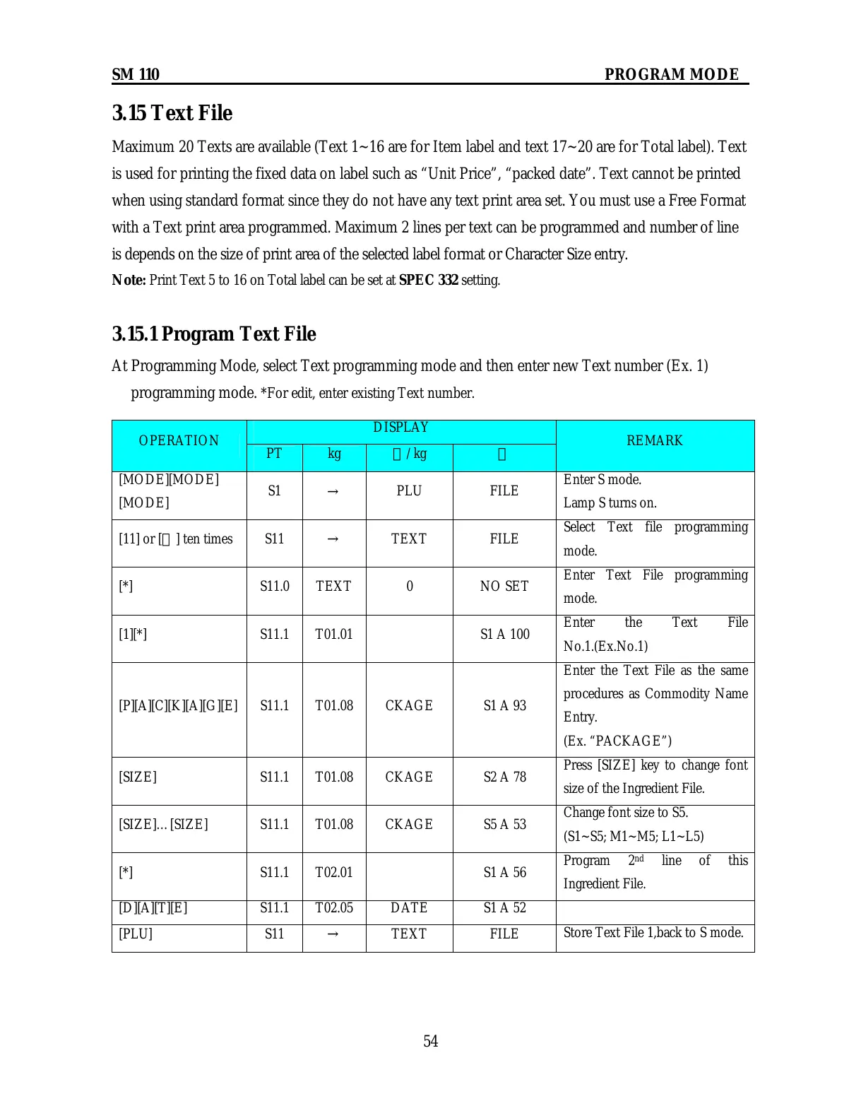 Note: Print Text 5 to 16 on Total label can be set at SPEC 332 setting.