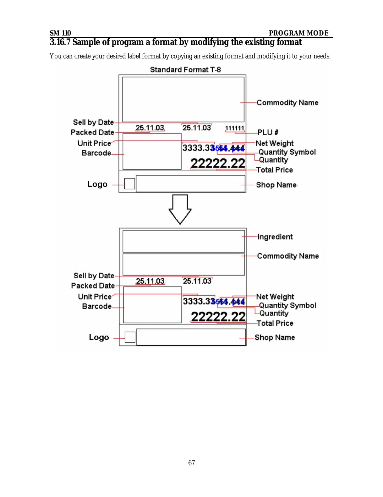 Digi SM-110 - Sample of Program a Format by Modifying the Existing Format