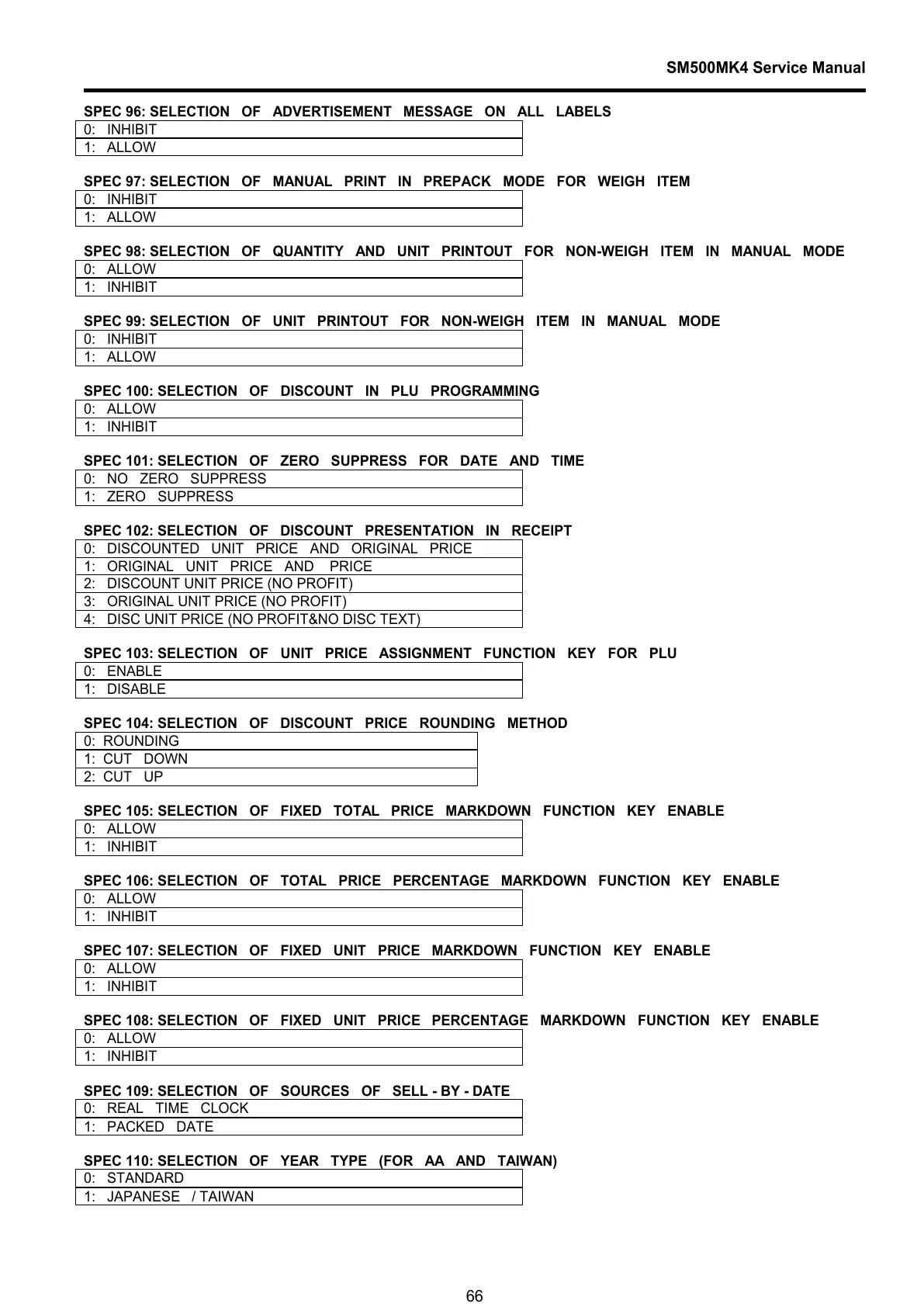 SPEC 99: SELECTION OF UNIT PRINTOUT FOR NON-WEIGH ITEM IN MANUAL MODE