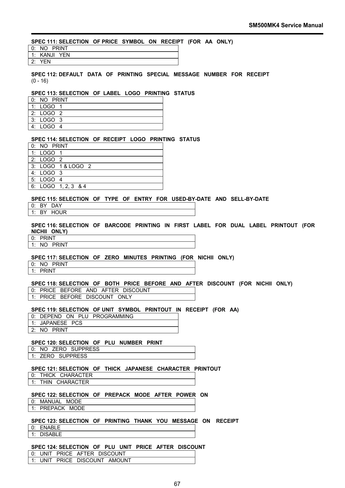 SPEC 111: SELECTION OF PRICE SYMBOL ON RECEIPT (FOR AA ONLY)