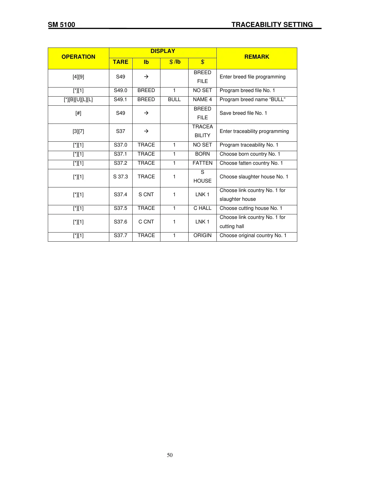SM 5100 TRACEABILITY SETTING