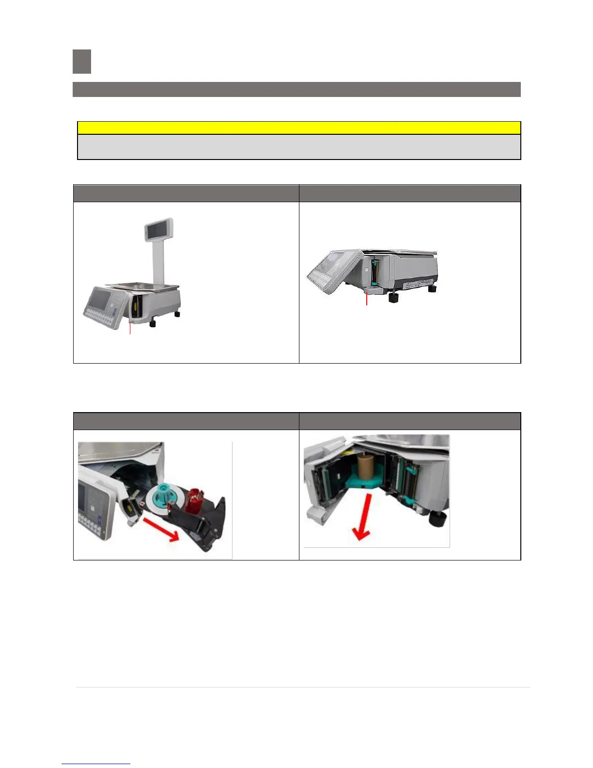 There is a cutter at the printer door near the dispenser. Take care not to touch or cut