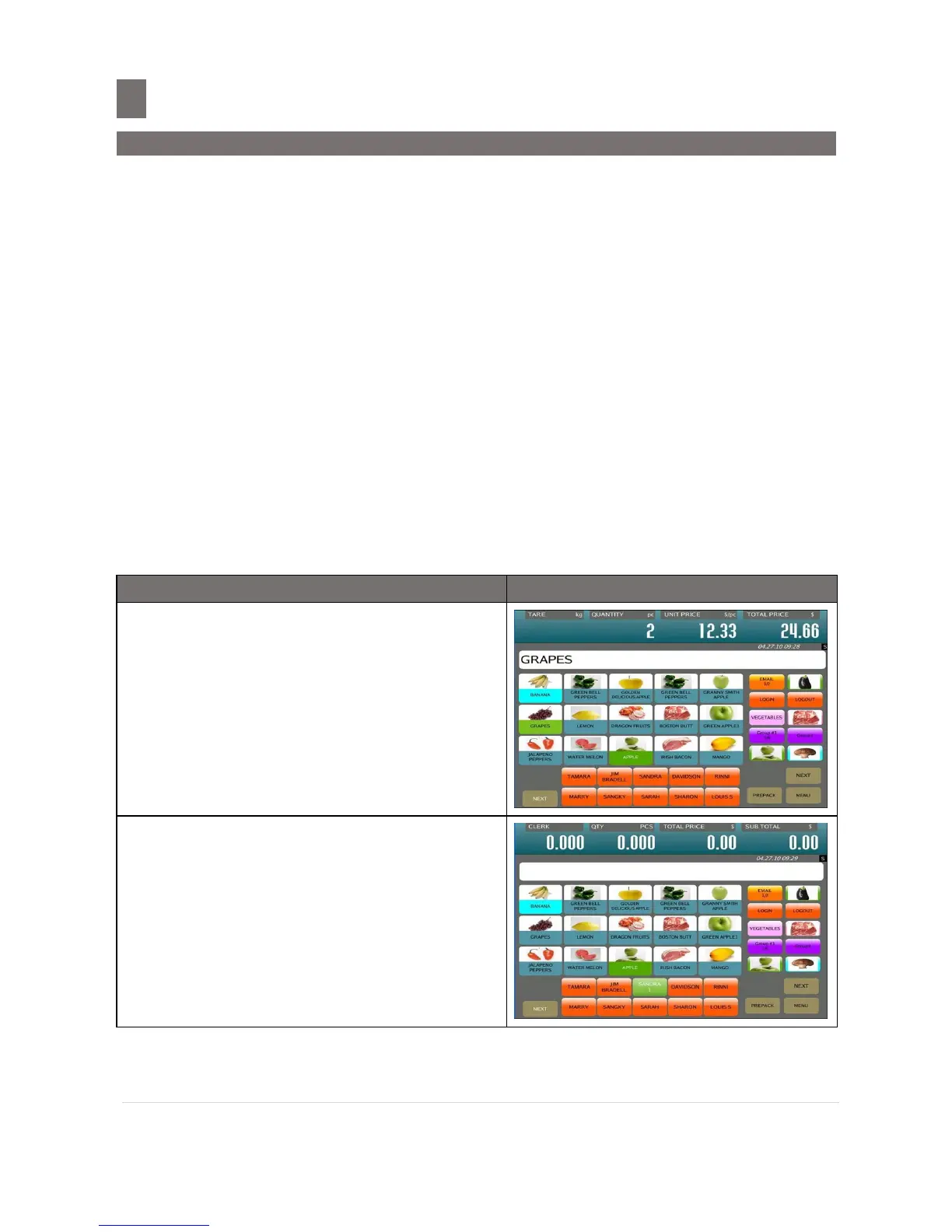 Example: Sells 2packs of GRAPES, 1kg of WATER MELON and sell more 1.5kg of MANGO for