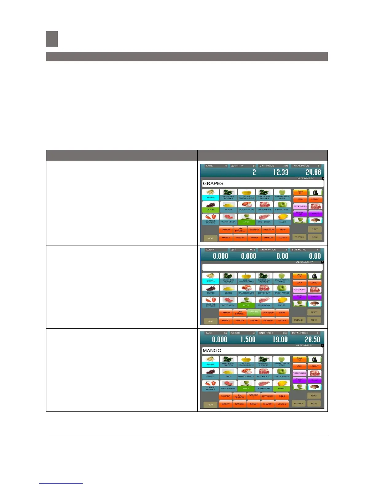 Example: Sells 2packs of GRAPES, 1.500kg of Mango and sell more 2packs of GRAPES for