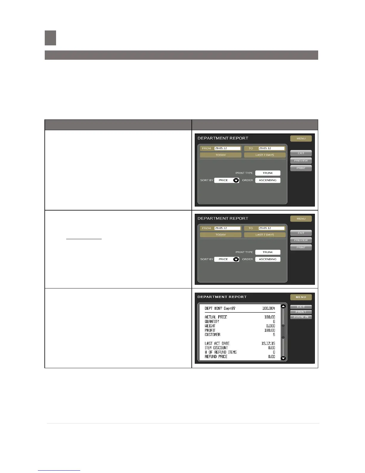 On Department Total Report, Sales transaction report is printed depending on the date range