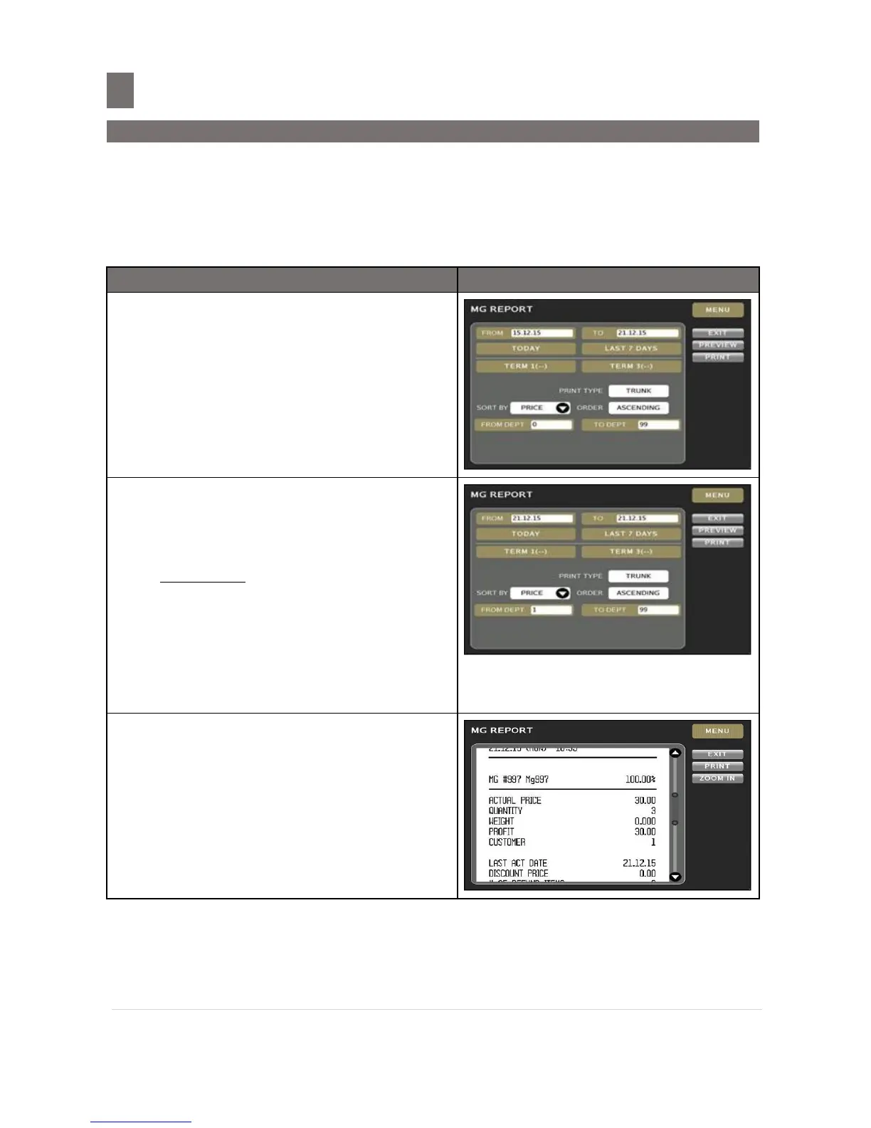 MG Report is used to view/print transaction data separated by MG number. On MG Report, Sales