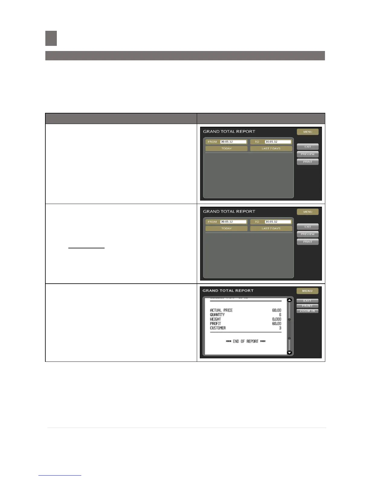 Grand Total Report is used to view/print transaction data separated by Grand Total Transaction.