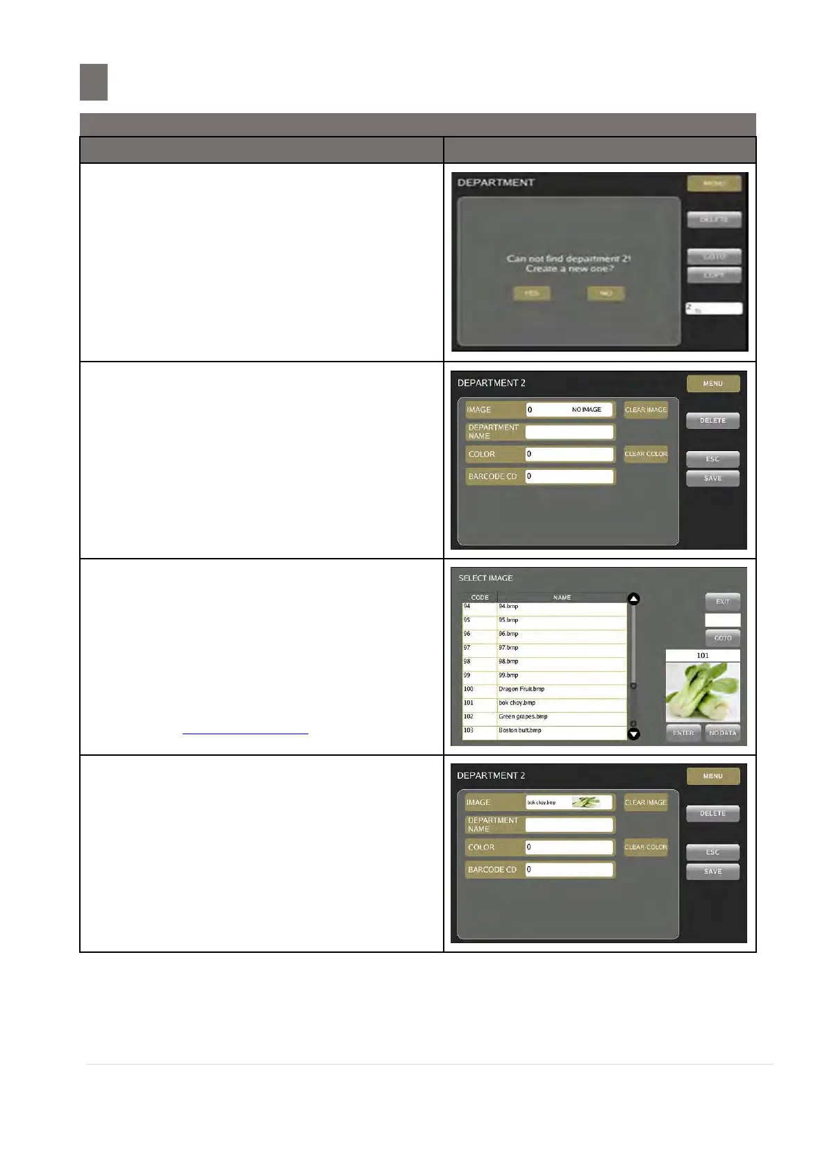 To create a new Department, touch [YES]