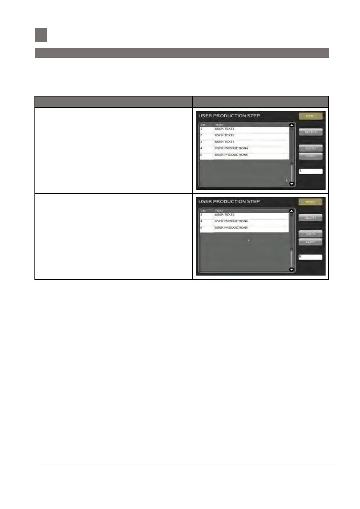 In User Production Step Programming Mode,