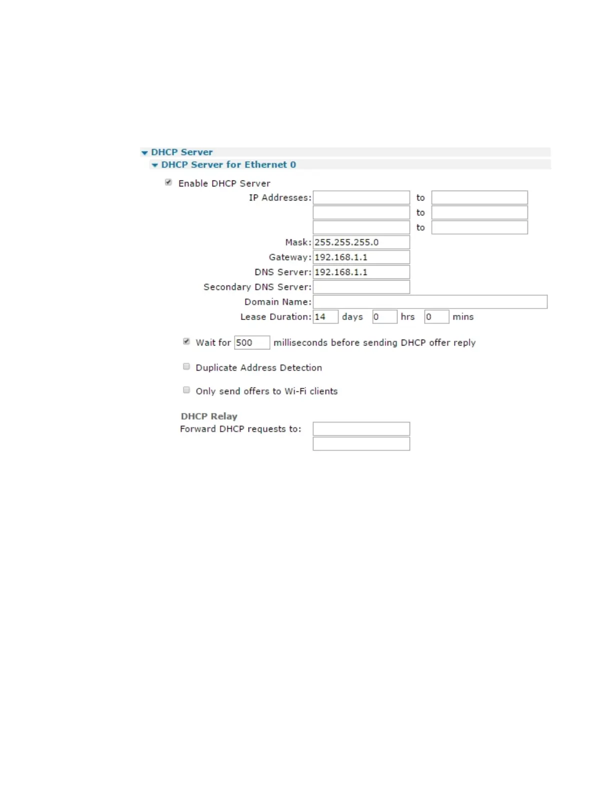 2. Configure DHCP server parameters: