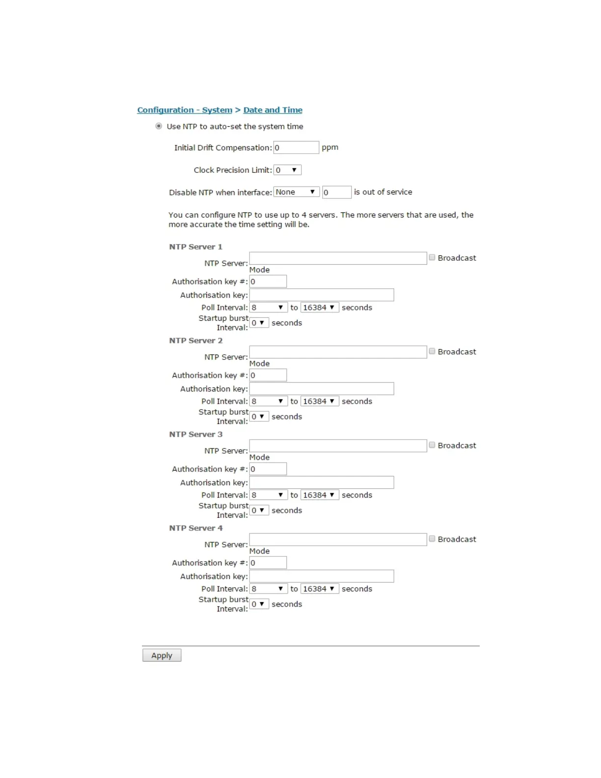 2. Select Use SNTP to auto-set the system time. The NTP server parameters appear: