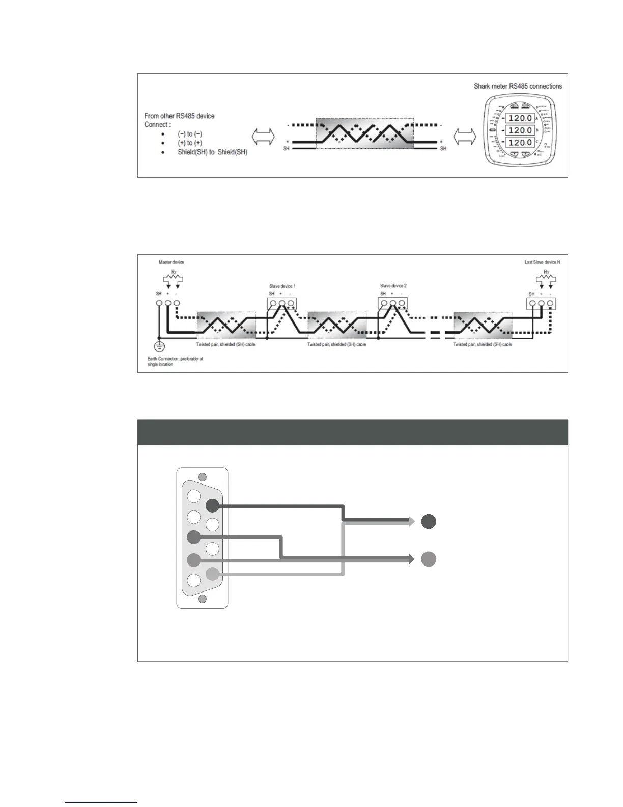 Hooking up multiple Shark meters to a single Digi TransPort WR21. Terminating resistors are only necessary on the