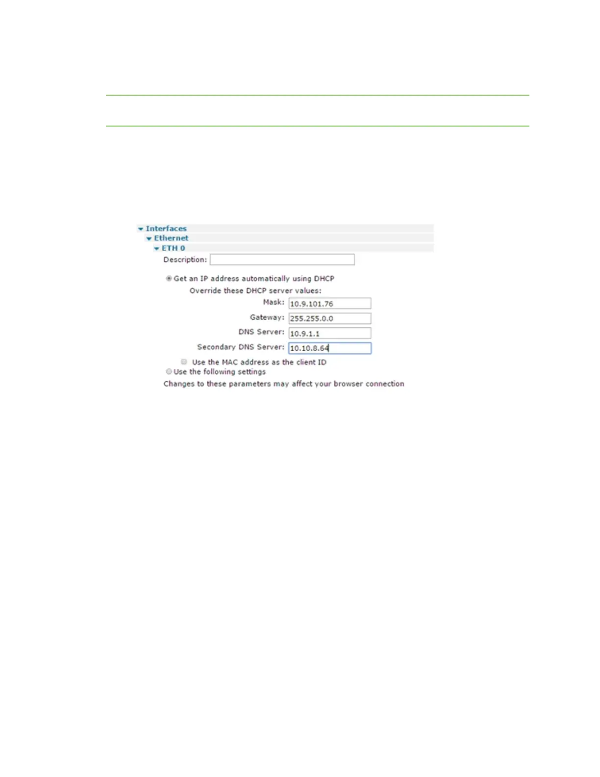 Enables the DHCP client on this interface. You can elect to override the DHCP server settings